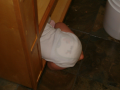 Callie decides to soak Mommy's Cinnamon barkWhat happen when we get this wet, Callie asks?Callie climbs under the TVCallie climbs under the TV